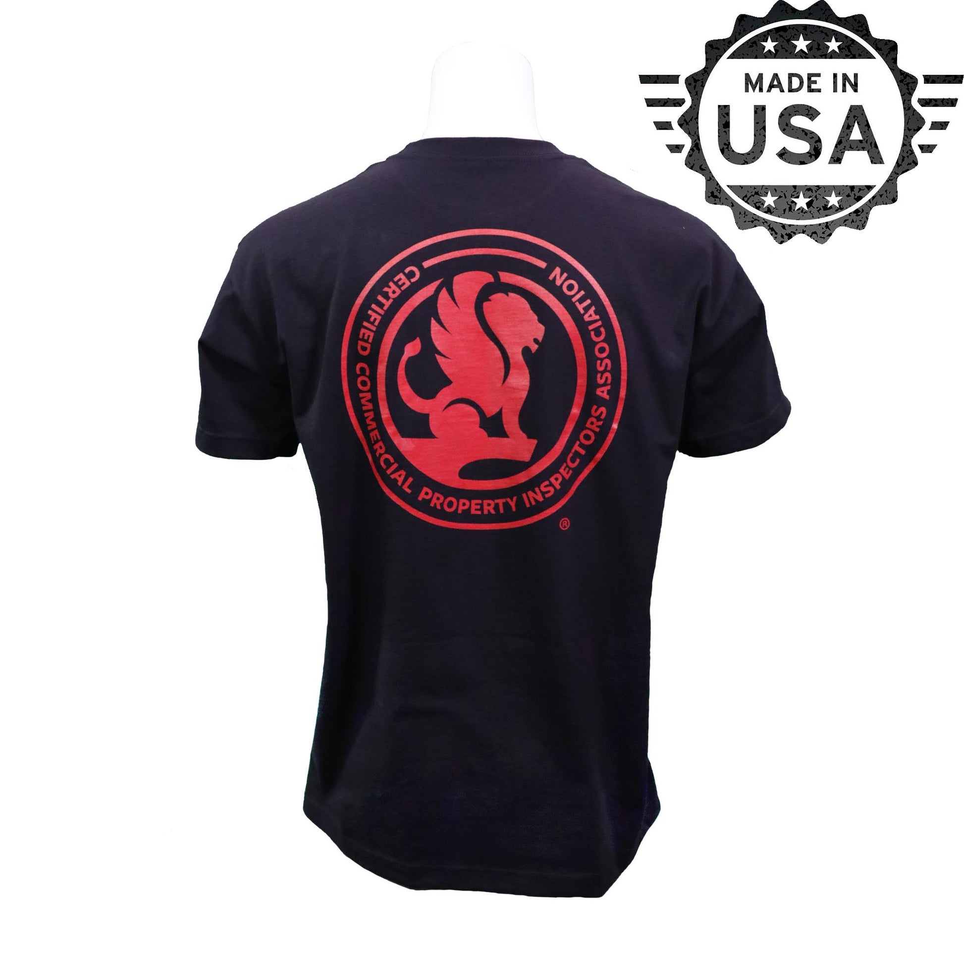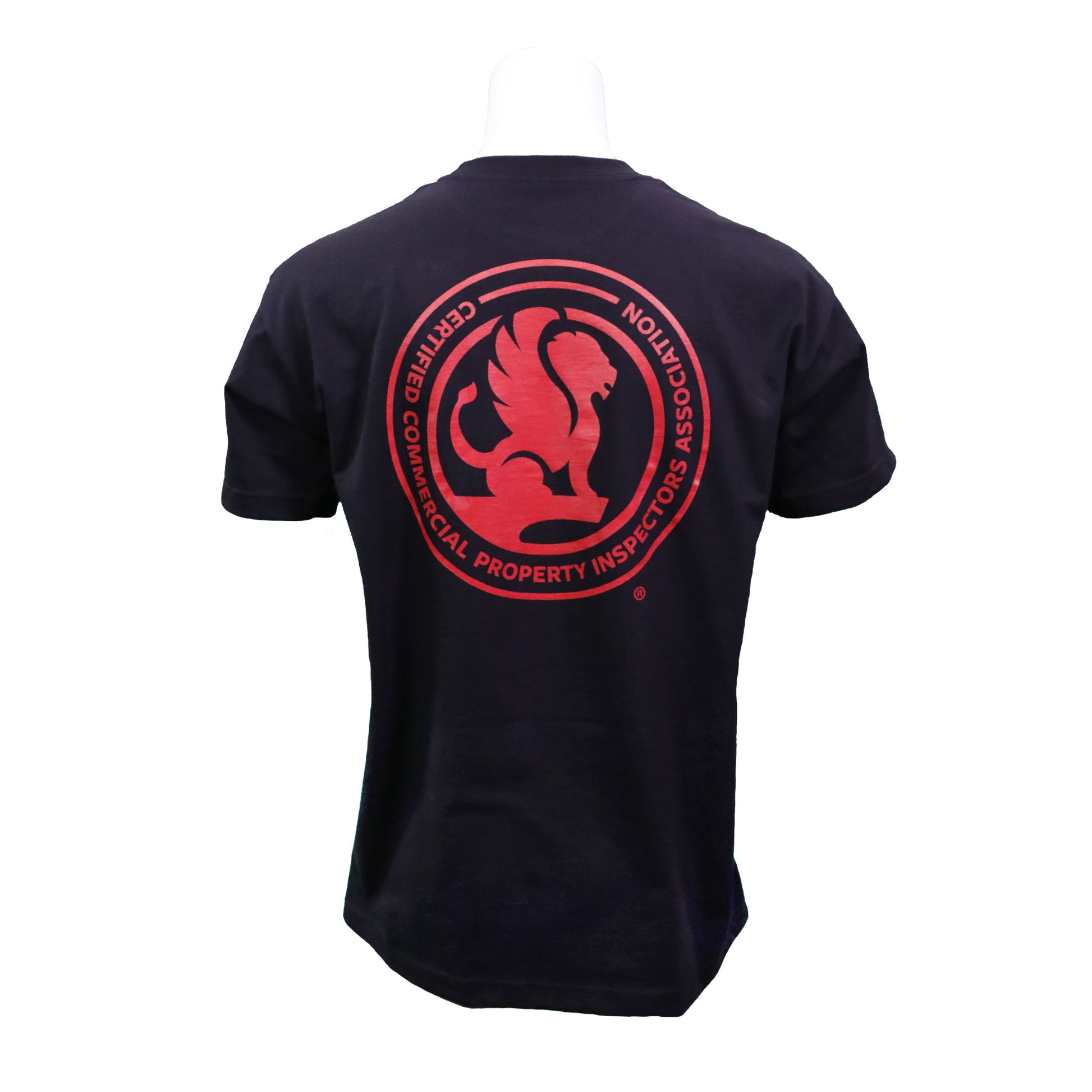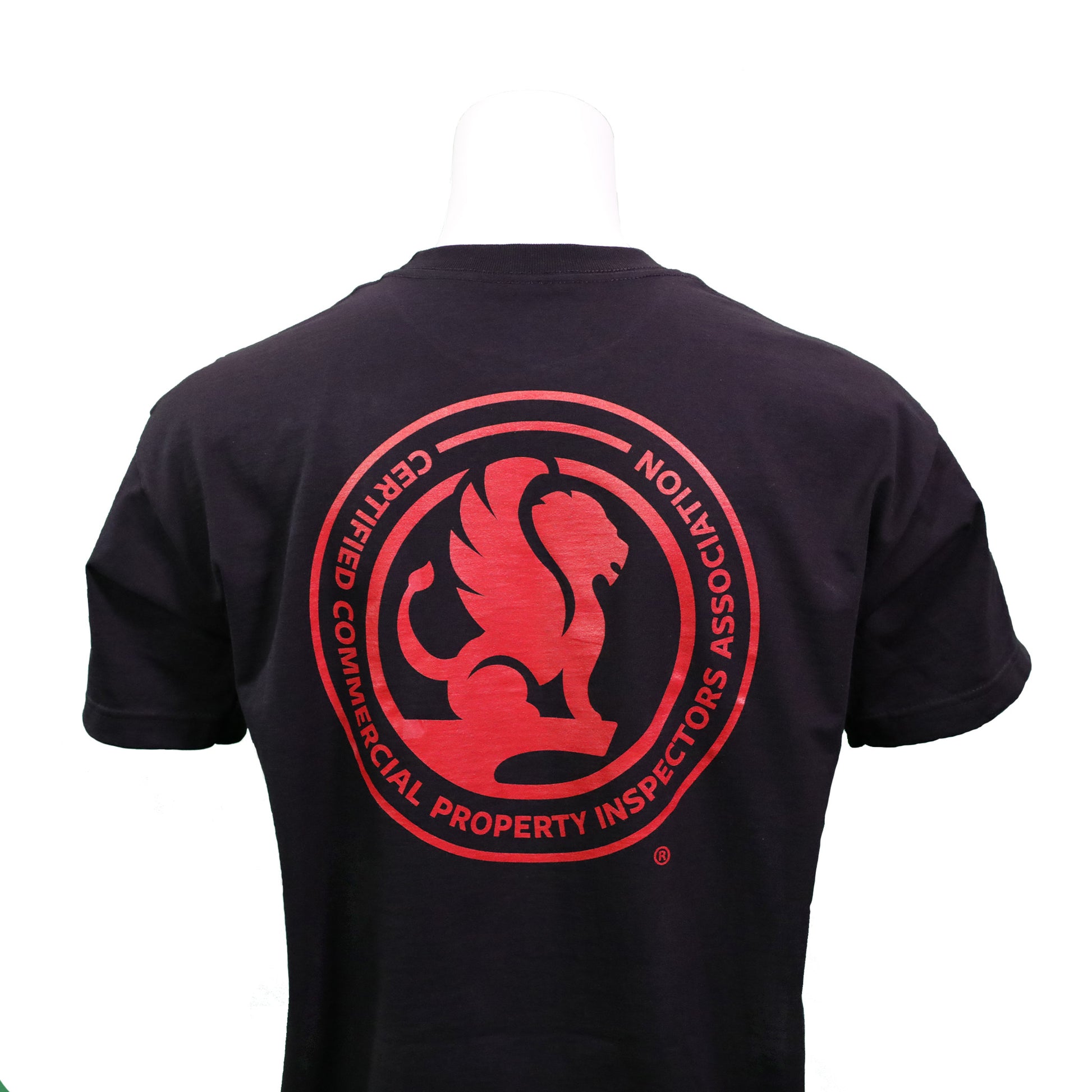 This black t-shirt has the text "Commercial Property Inspector" above the front left pocket and features the CCPIA logo across the back.