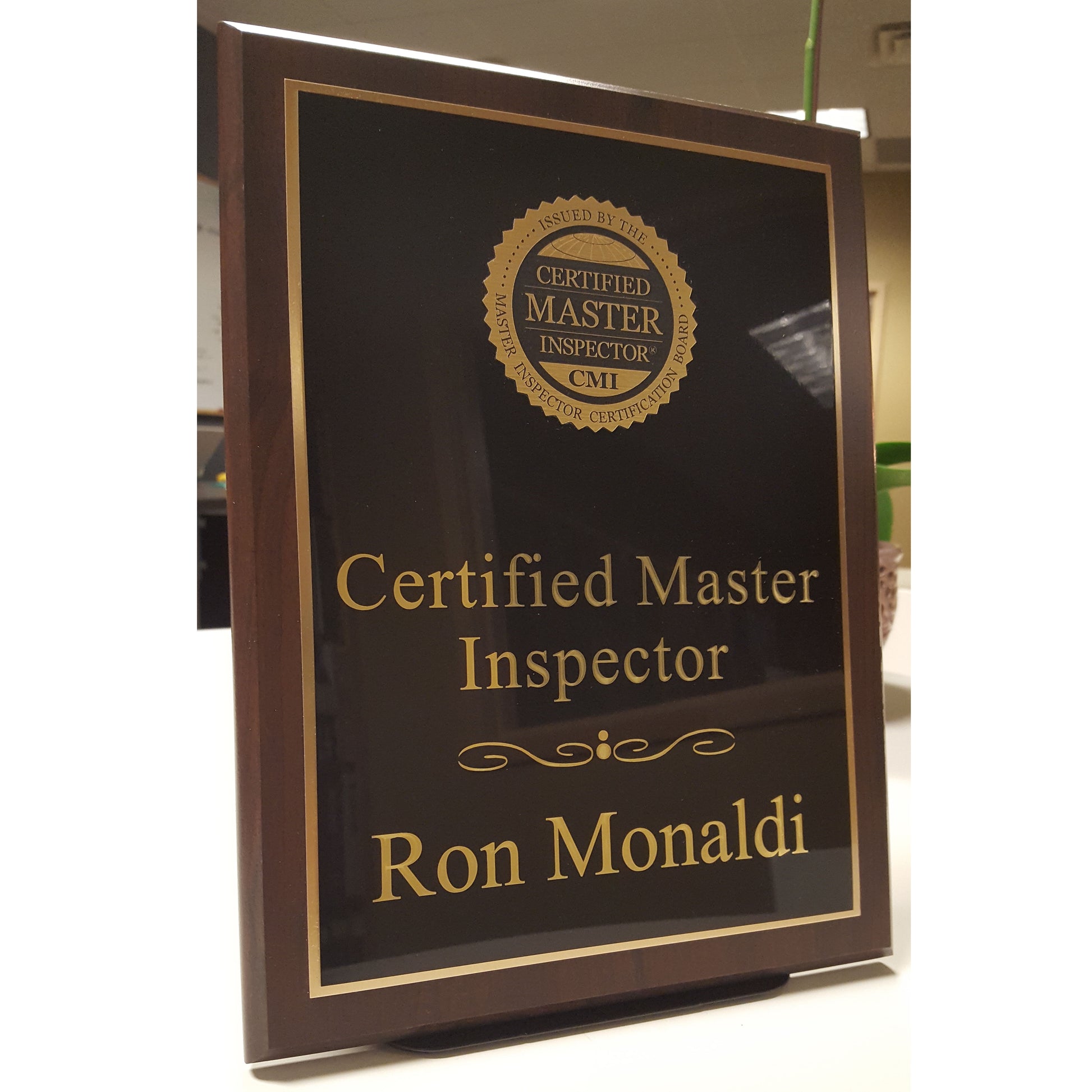 Custom-designed Certified Master Inspector plaque.