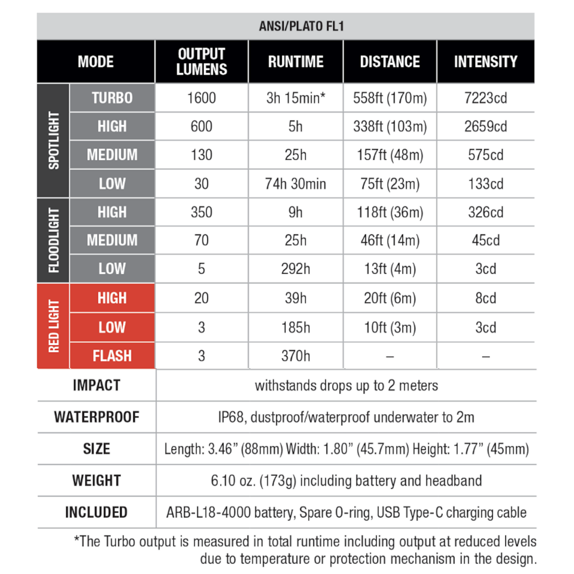- Included: ARB-L18-4000 battery, Spare O-ring, USB Type-C charging cable