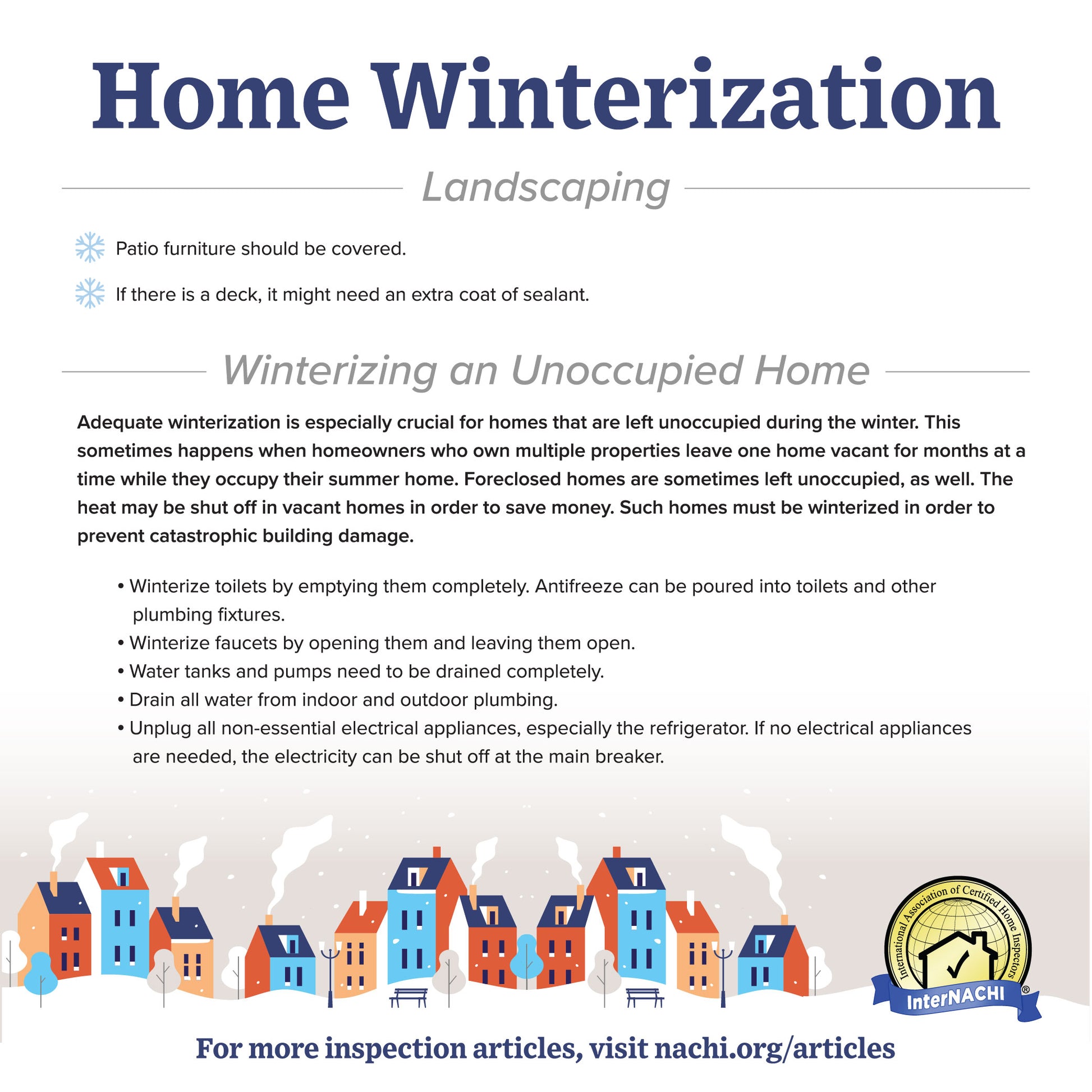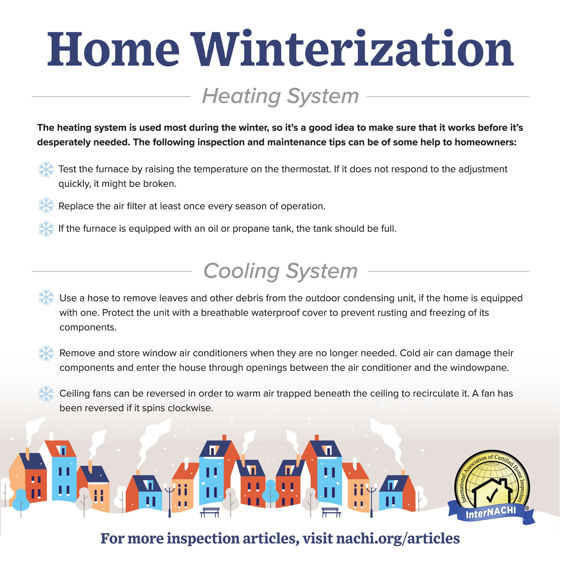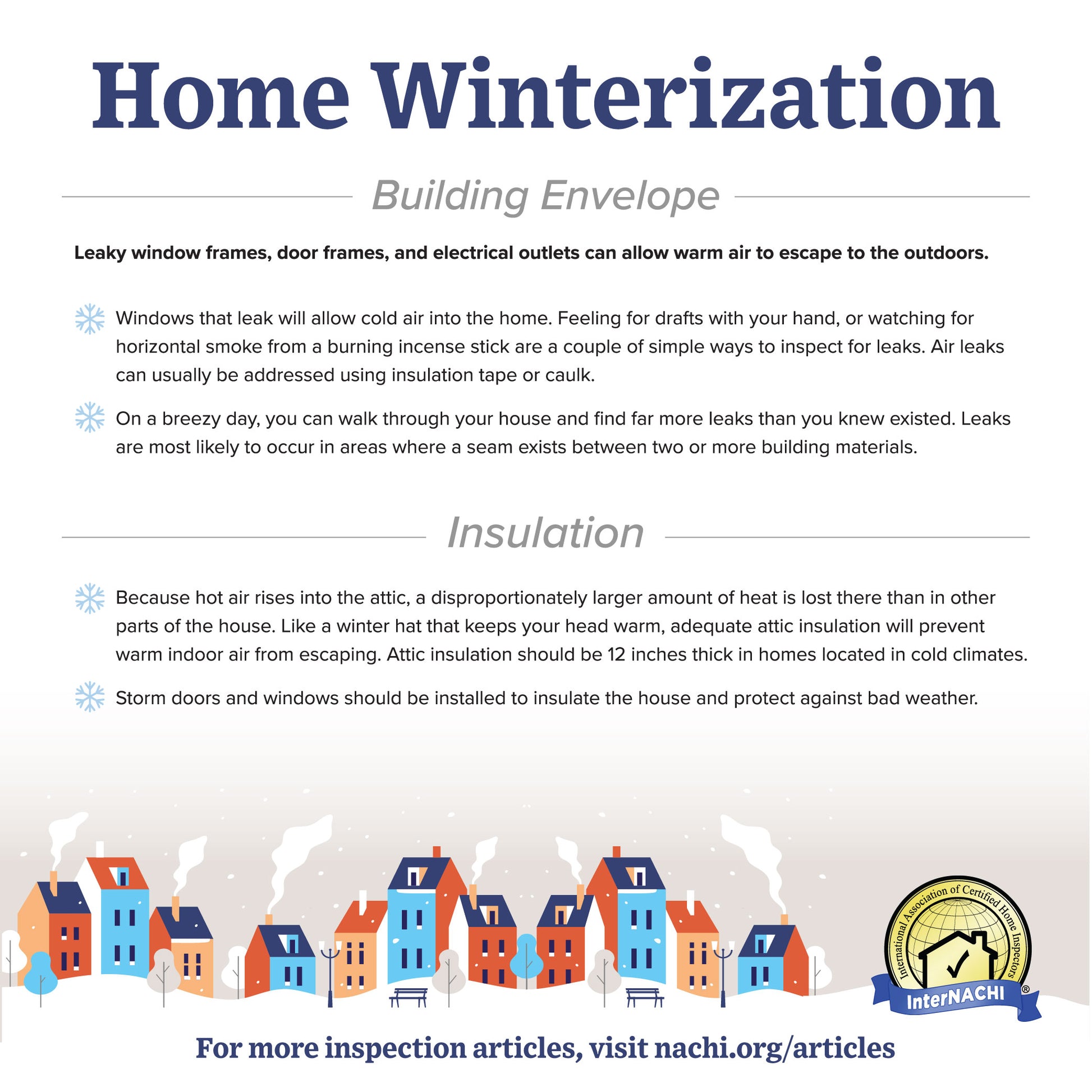 Provide your clients and social media followers with home winterization tips. Print out the high-resolution flyer as a leave-behind, or send to your clients via email or as a download.