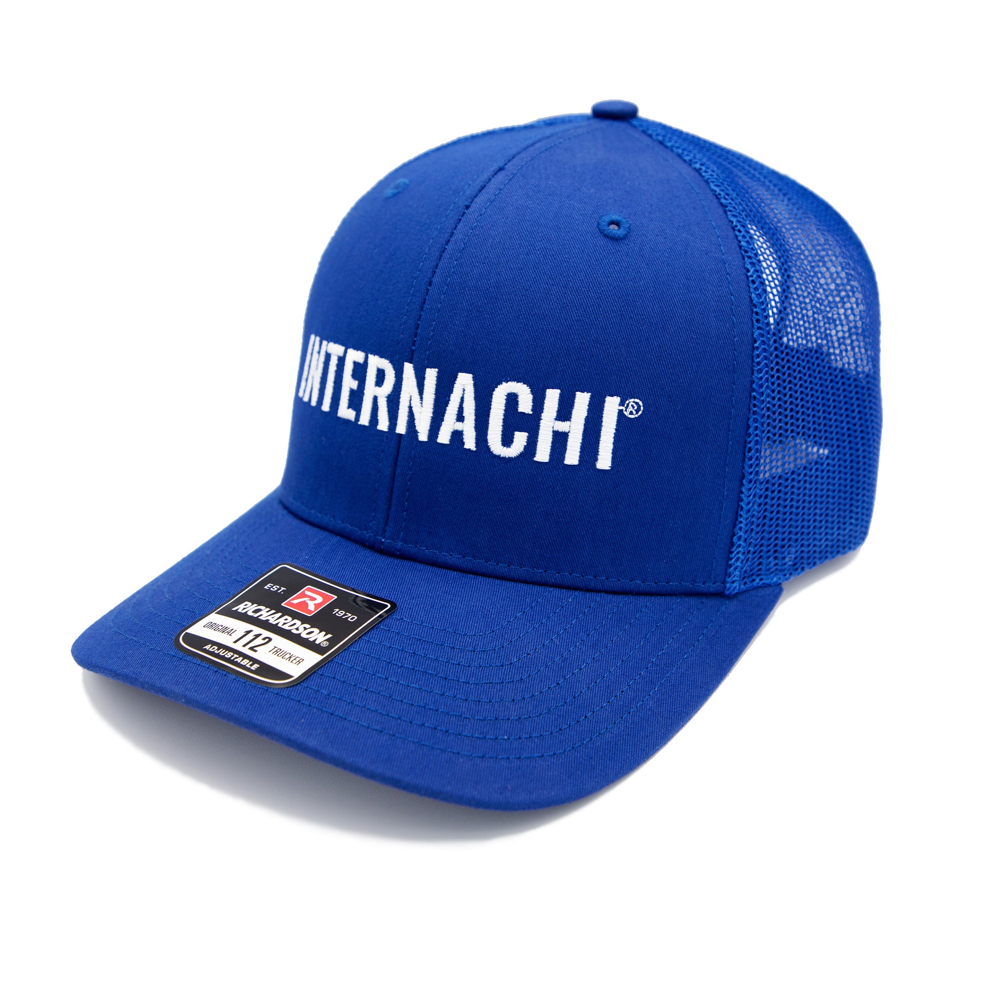 The InterNACHI® trucker cap is available in royal blue. It features the text "INTERNACHI®" in white embroidery.