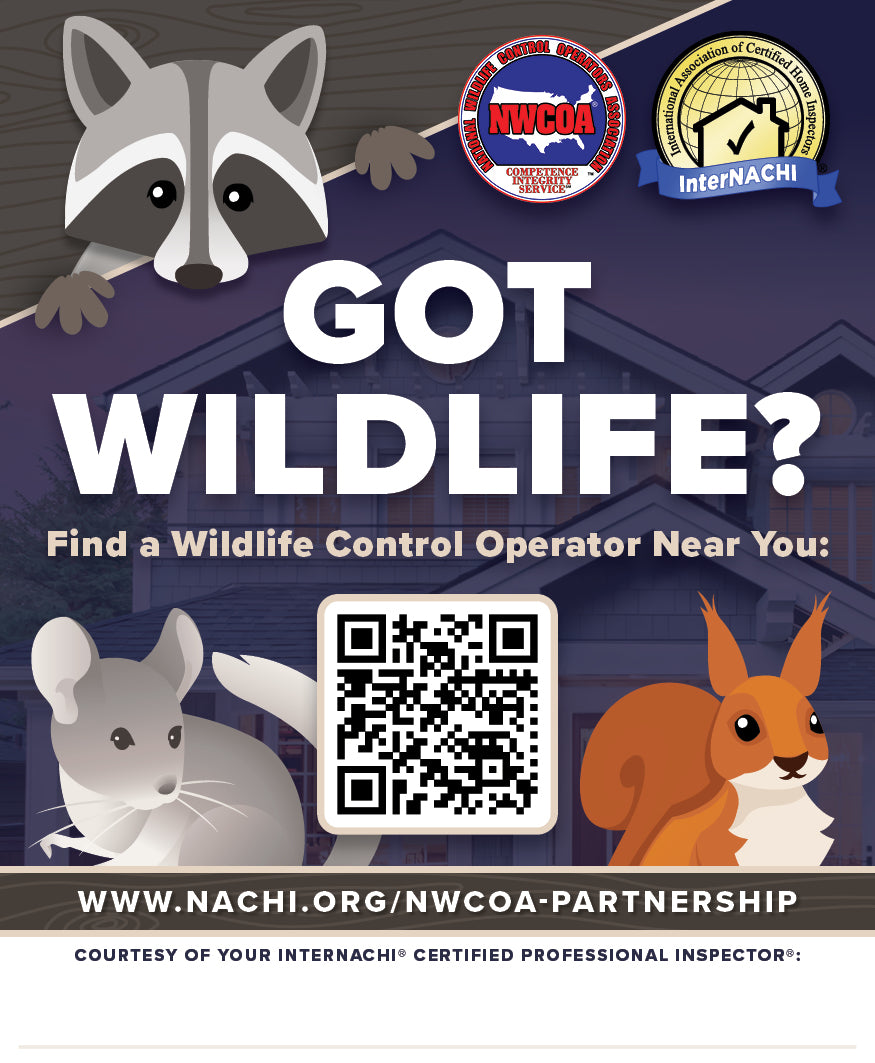 Give your clients a handy magnet that tells them what to do if they encounter unwanted wildlife around their home. These 3.5x4-inch magnets also include a space along the bottom where you can write in your inspection company's contact info. Pack of 50 magnets.